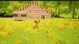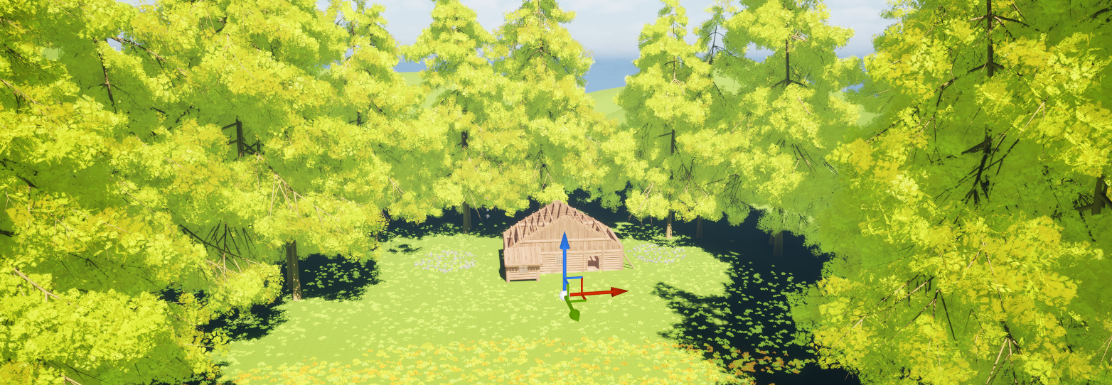 사용 에셋: 오두막,잔디,돌맹이,나무 - Stylized Log Cabin
