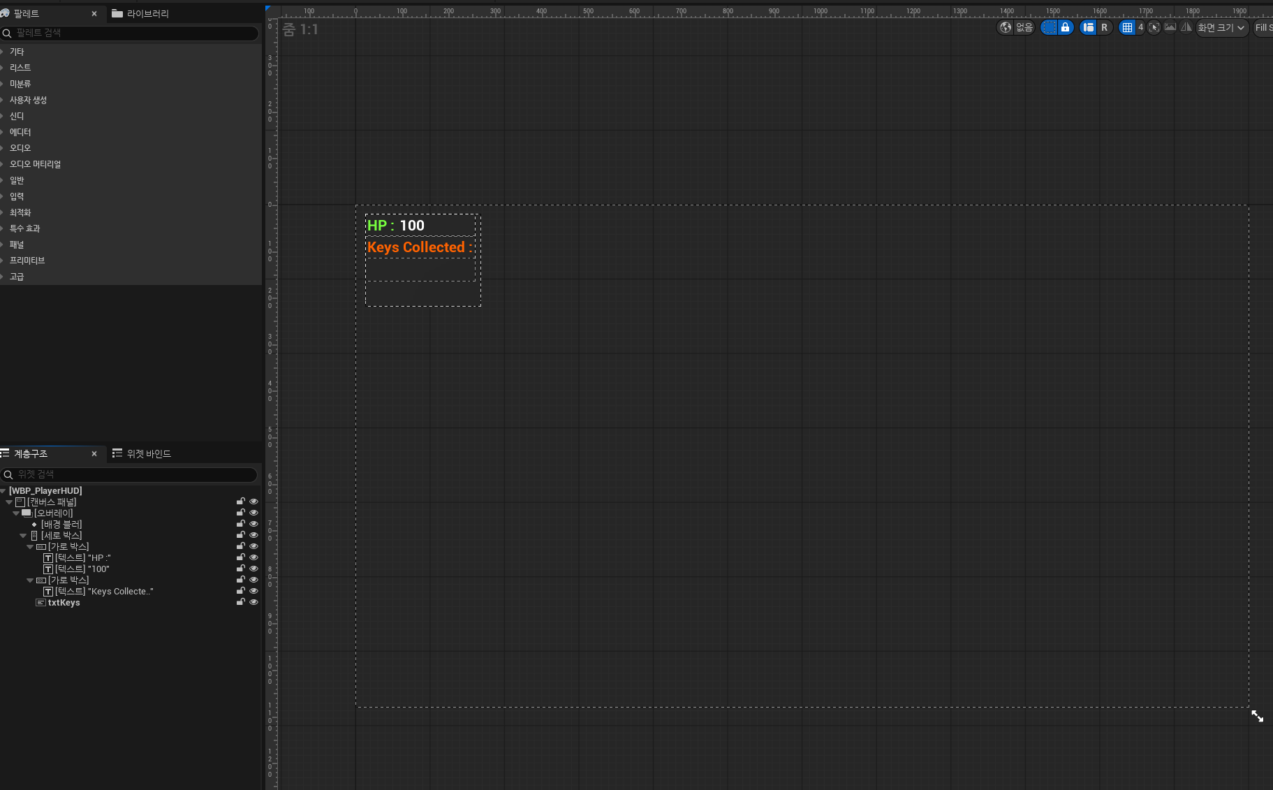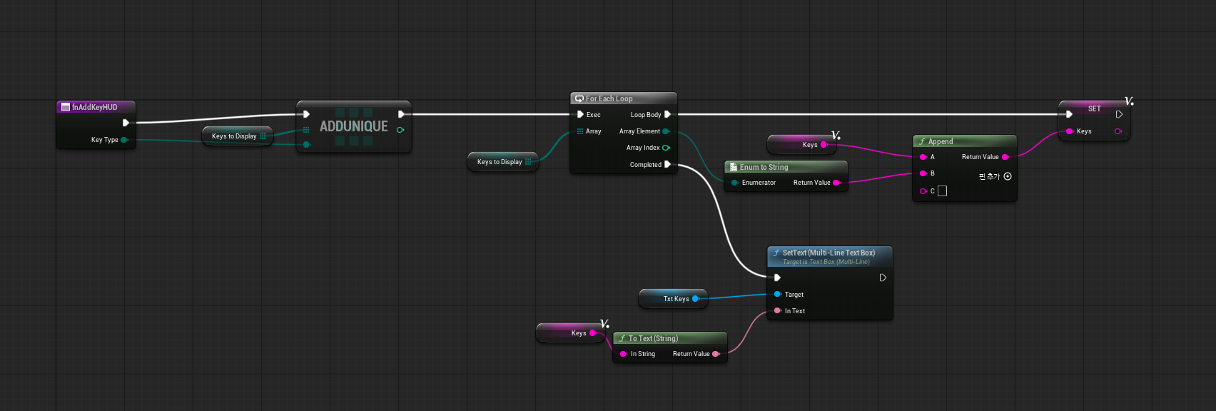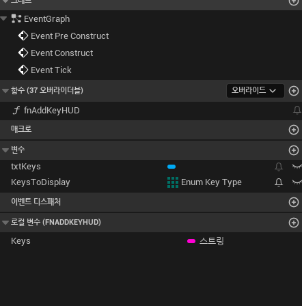 함수 생성(fnAddKeyHUD): 외부(캐릭터)에서 호출할 수 있는 함수를 만듭니다.