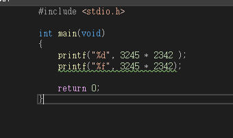 3245 * 2342의 계산 결과를 화면에 출력시키기 위해 printf(”Result: %d”, 3245 * 2342)라고도 적을 수 있습니다.