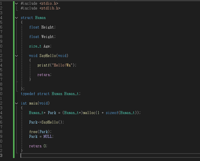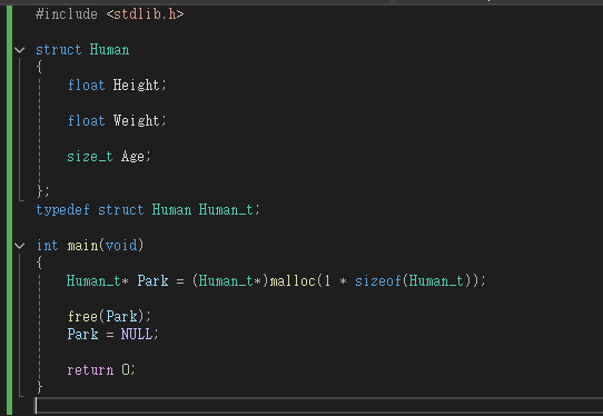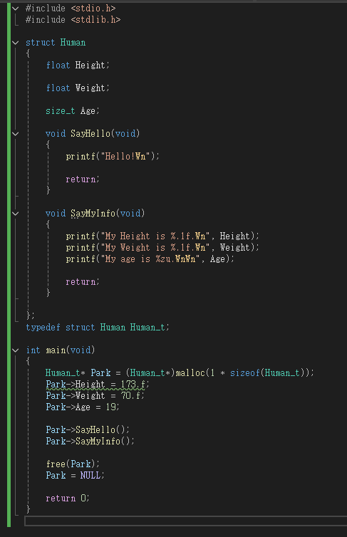 Park이라는 Human_t 객체를 만들어 낸 예제입니다.